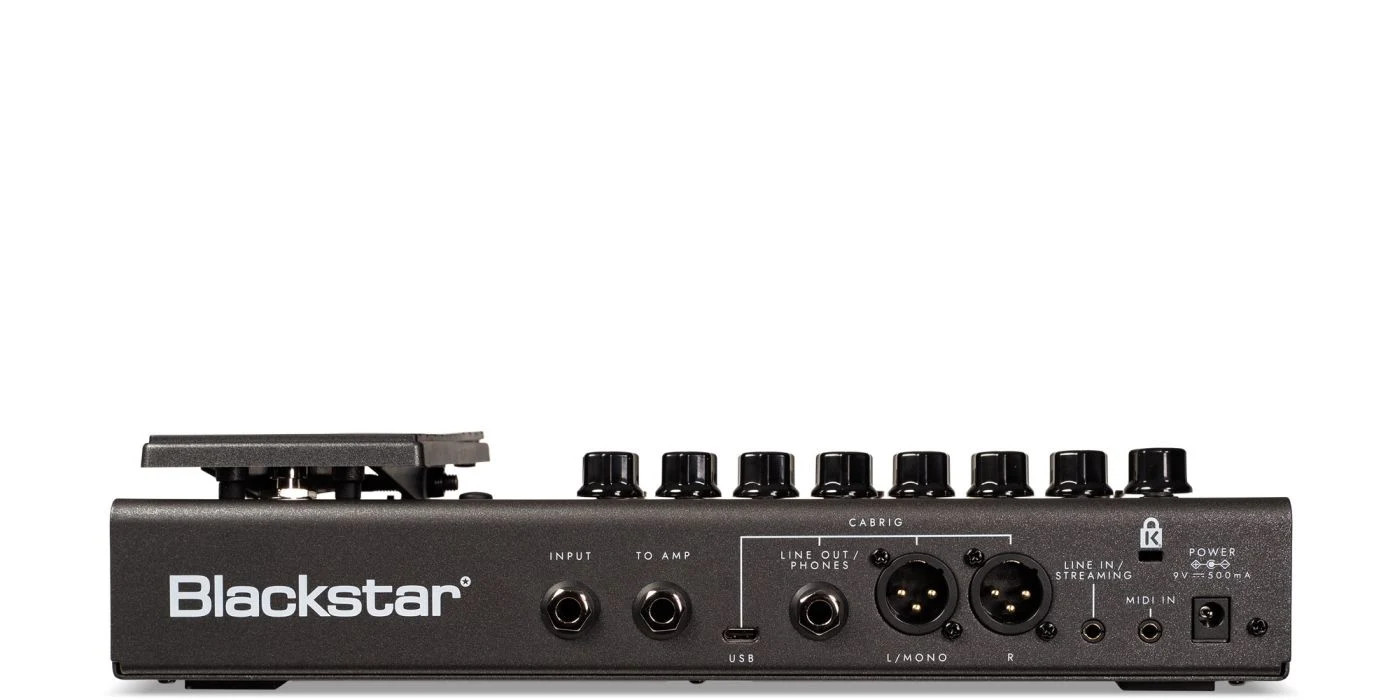 - Inbyggd expression-pedal för wah, volym och effektkontroll